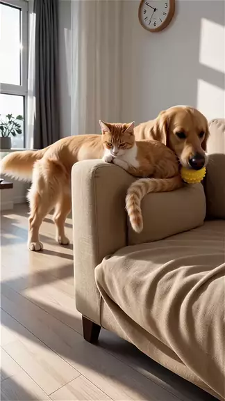 The kitten is sick and unhappy today.The puppy went to comfort her.