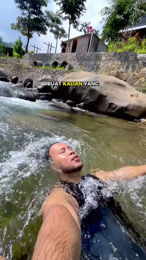 Sensasi menginap tepi sungai . Booking sekarang lewat tag lokasi ya biar lebih murah#thelandeuh#staycationbogor#penginapansentul