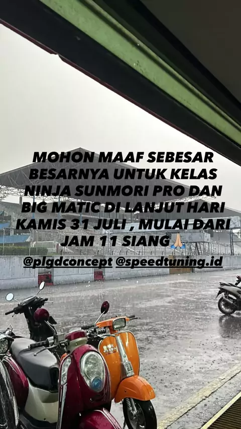Close Track dikarnakan hujan deras lanjut besok kamis 31 juli jam 11 siang 🌧️#Arisan500M#PLGDConcept#SkuterAlig#SpeedTuningID#BalapMatic#NinjaSunmori#NoJumperNoEngkol#RaceDayVibes#armrayong#hp969racingteam#tatonlamluķka#mrlex#lmnthailand#pnwthailand#teknotunerhsofficial#dragbikeindonesia#dragbikethailand#zonavana##pppppppppppppppppppppp