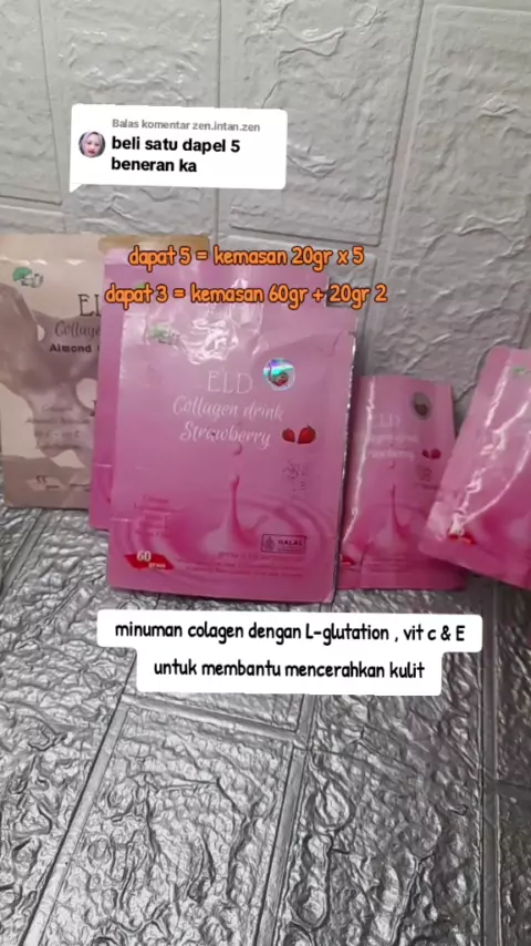Membalas @zen.intan.zen sama aja ya kak cuma beda kemasan saja total isinya tetap sama #eldcolagenstrawbery