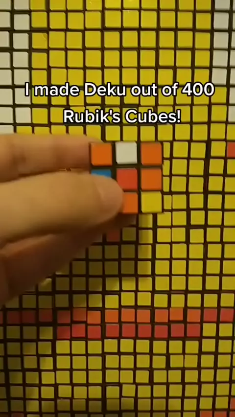 Deku made from 400 Rubik's Cubes. #rubikscubesolver #pixelart #mosaic #ItsOurHome #rubiksdude #rubikscube #artist #art #weeb #manga #deku #mha