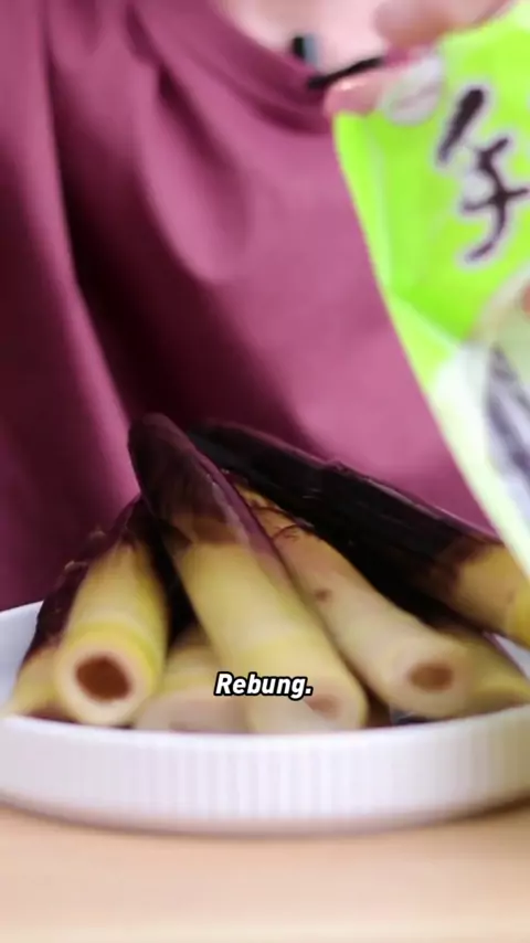 Tas yang baru dibuka dari rebung yang dikupas tangan renyah dan lezat, baik tua dan menyegarkan.