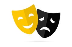 Máscaras de teatro ícones de vetor de máscaras ícones de máscara cômicos e trágicos símbolo tradicional feliz e infeliz do teatro máscaras de teatro engraçadas e tristes ilustração vetorial | Vetor Premium