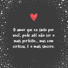 O amor que eu sinto por você, pode até não ser o mais perfeito... mas com certeza, é o mais sincero.