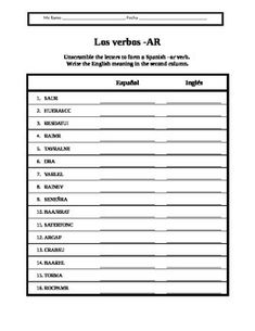 Spanish AR Verb Unscramble Puzzle