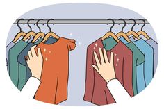 pessoa escolhendo roupas em cabides na loja. cliente ou cliente renova o guarda-roupa comprando roupas na boutique. compras e consumismo. ilustração vetorial.