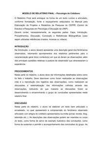 Modelo de relatório final Psicologia do Cotidiano - Psicologia do Cotidiano
