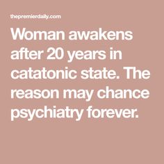 A catatonic woman awakened after 20 years. Her story may change psychiatry