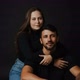 Gera um retrato profissional ultra-realista das duas pessoas sem alterar nenhuma facção ou características das duas que estão de lado a mulher na frete abraçadas olhando pra frente vestidas de vermelho a mulher e preto o homem elegante e as duas. De pé O estúdio deve ter iluminação clara com fundos pretos em HD. Olhando com seus rostos juntos Romântico com a cabeça inclinada para o lado Cenário cinematográfico de retrato de meio comprimento, sem mudar o rosto do retrato #gemini #foto #fotograf...