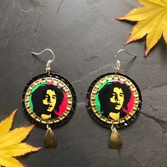 Bob Marley earrings/ hand made eco earrings / Rasta earrings / Bob Marley gift