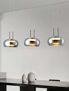 Johan Pendant Lamp ∅ 13.8″ x H 7.1″/ Dia 35cm x H 18cm-Silver & Smoke grey-Trichromatic Dimming