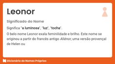 Significado do nome Leonor - Dicionário de Nomes Próprios