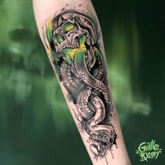 Tattoo uploaded by Guille Ryan • La marca tenebrosa es el símbolo de Lord Voldemort y sus mortífagos. Esta marca fue grabada a fuego en el antebrazo izquierdo de los mortífagos más allegados a Lord Voldemort y también podía ser conjurada en el cielo por el maleficio Morsmordre. . Tattoo hecho en @whynot.tattoo AGENDA ABIERTA BARCELONA guilleryanarttattoo@gmail.com . . . #harrypotter #potterheads #harrypottertattoo #wizardingworld #watercolortattoos #sketchtattoo #frikismo #marcatenebrosa🐍💀 #jkrowling #harrypotterfanart #barcelonatattoocommunity #barcelona2021