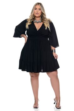 Vestido Plus Size Transpassado Preto Curto