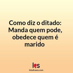 Como diz o ditado: Manda quem pode, obedece quem é marido