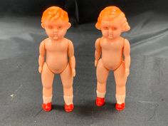 Brother and sister dolls 9 cm with sleeping eyes - painted shoes and socks - movable arms and legs - vintage - made in Hong Kong