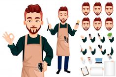 Personagem de desenho animado mestre barbeiro | Vetor Premium