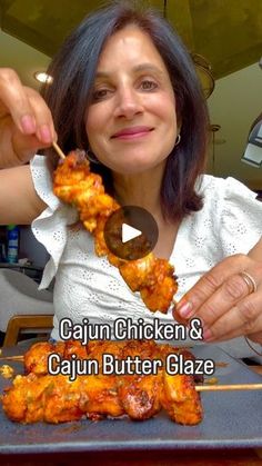 9.4K views · 1K reactions | Cajun Chicken Skewers with Cajun Butter Glaze 1. 2 chicken breast 1.5 pounds 2. 1 heaping tablespoon cajun seasoning - I use @slapyamama or @cajuntwostep 3. 1 heaping teaspoon paprika, garlic powder, onion powder 4. 5 garlic minced 5. Lemon zest of half lemon 6. Juice of half lemon 7. 1 tablespoon olive oil 8. 1 teaspoon parsley Cajun butter glaze 1. 3 tablespoons butter softened 2. 1 tablespoon lemon juice 3. 1 tablespoon cajun seasoning 4. 1 tablespoon parsley 1. Presoak wooden skewers into hot water about 20 minutes 2. Cut chicken in to pieces 3. Add all of the chicken seasonings including oil 4. Mix and massage into the chicken 5. Thread chicken pieces onto the presoaked wooden skewers 6. Air fry at 390 degrees F for 11-12 minutes flipping half way through . You can also baste the chicken skewers when flipping for extra juicy chicken 7. Mix the Cajun butter glaze ingredients 8. Generously brush on the butter glaze to each chicken skewer 9. Serve as a main dish or over rice, pasta , mashed potatoes. #foodies #delicious #chicken #wings #seafood #wingrecipes #recipe #recipes #cooking #instafood #igdaily #dinner #food #yum #instagood #foodporn #foodstagram #foodlover #foodgasm #instadaily #tasty #tastyfood #chickenrecipes #reels #reelsinstagram #reelsofinstagram #reelsviral #reelsinsta #foodie #deliciousfood chickens lunch bbq salad beef Mongolian Chinese food take out fake away eeeeeats huffposttaste bhg | Chhaya Joshi Daily food / cocktails | cookwithchay · Original audio